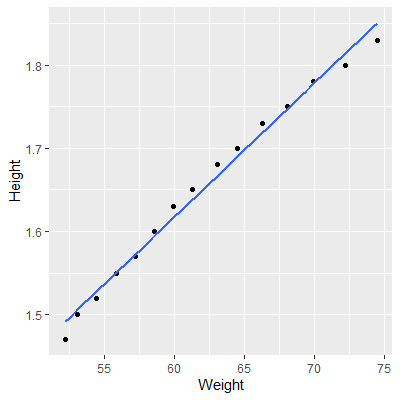 In this example, we will consider the weights (in kg) and heights (in m) of 16 women ages 30-39. The dataset is from kaggle.